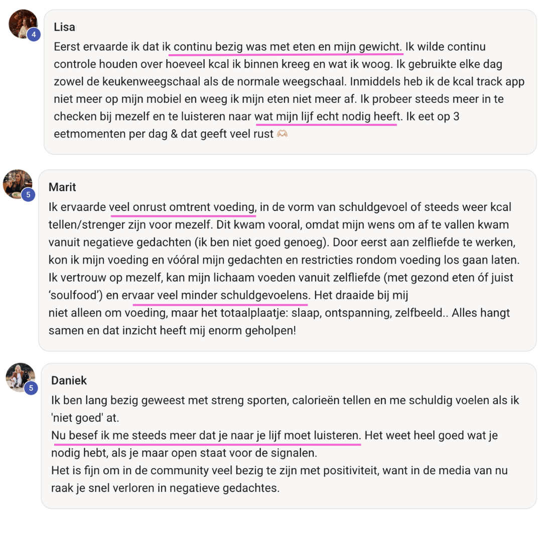 Ik weet hoe het voelt om de hele dag bezig te zijn met eten, jezelf streng te houden en toch het gevoel te hebben dat je nergens komt. Ik heb het zelf jarenlang zo gedaan.
